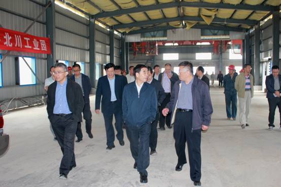 圖一:駱副省長(中)一行在集團王總(右一)等領(lǐng)導(dǎo)的陪同下實地來到生產(chǎn)車間視察