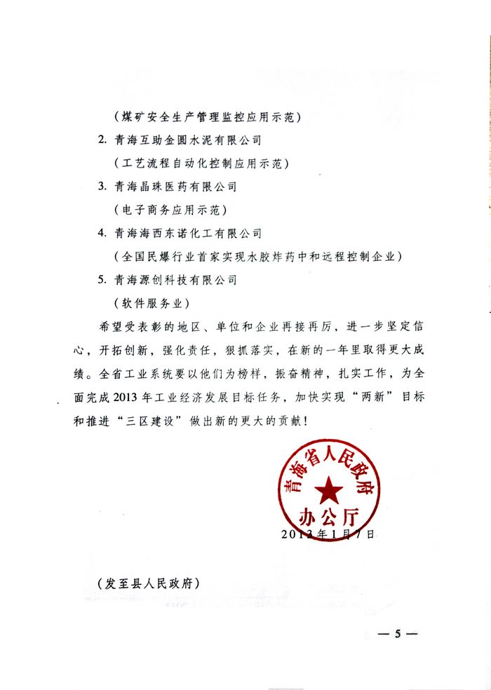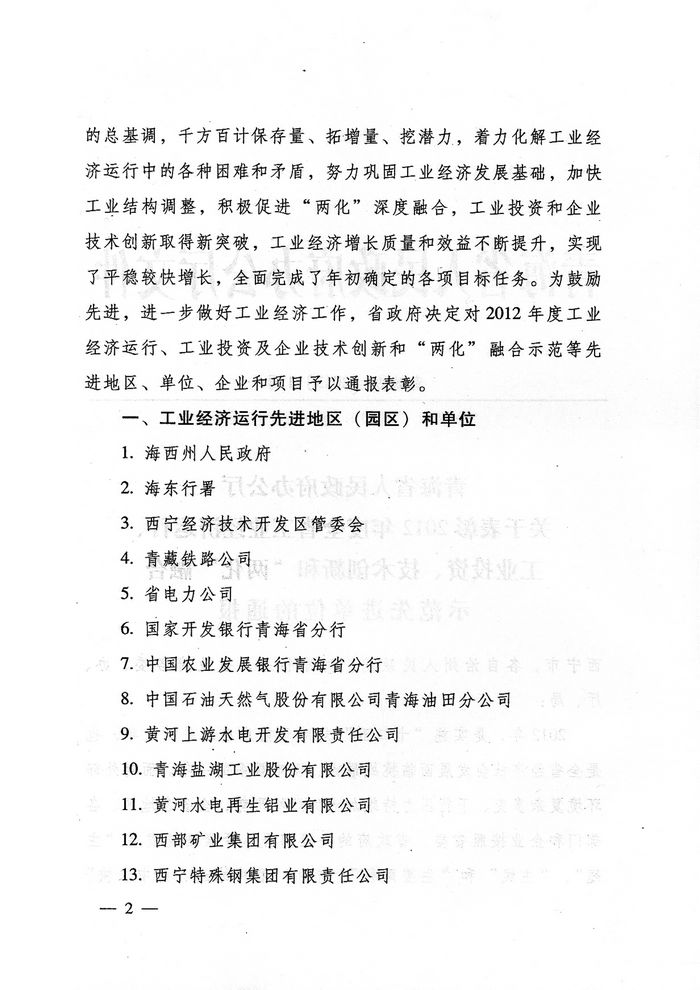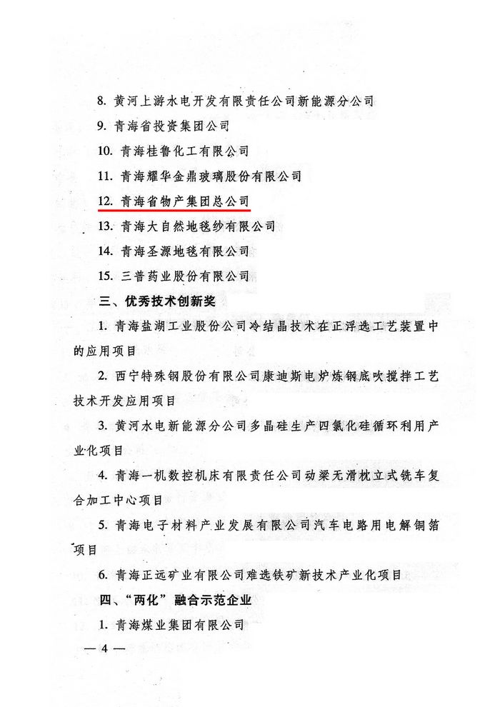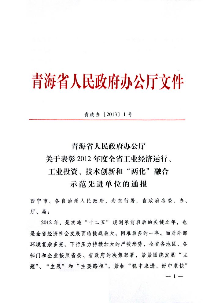 2012年,青海省物產(chǎn)集團總公司在省委、省政府及省國資委的大力支持和領(lǐng)導下,集團總公司按照全省工業(yè)經(jīng)濟總體部署和要求,著力推進工業(yè)項目建設,榮獲"2012年度工業(yè)投資貢獻獎"。