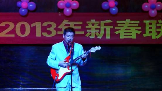 臨空開投公司郎建明為大家表演吉他彈唱